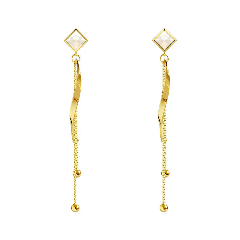 Silver Needle Geometric Square Long Curved Stick Slimming Earrings Temperament Wild Tassel